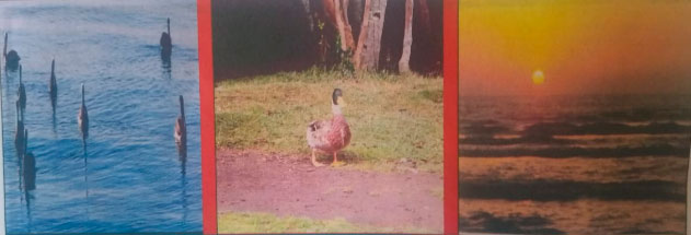 Fotos que yo tomé Izquierda: Pelicanos en Chile C.A., Centro: Patos en Costa Rica C.A., Derecha: Puesta del sol en Guaymas.